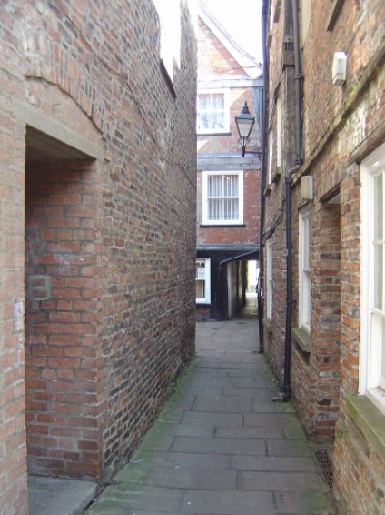 The city of York is home to these types of passage and paths, mostly medieval, though there are some modern paths. Mostly, they have names like any other city street, but often have fascinating or peculiar names such as Mad Alice Lane, Finkle Street (formerly Mucky Peg Lane), Nether Hornpot Lane, Lady Peckett's Yard, and Whip-ma-Whop-ma gate. Each has its own historical narrative